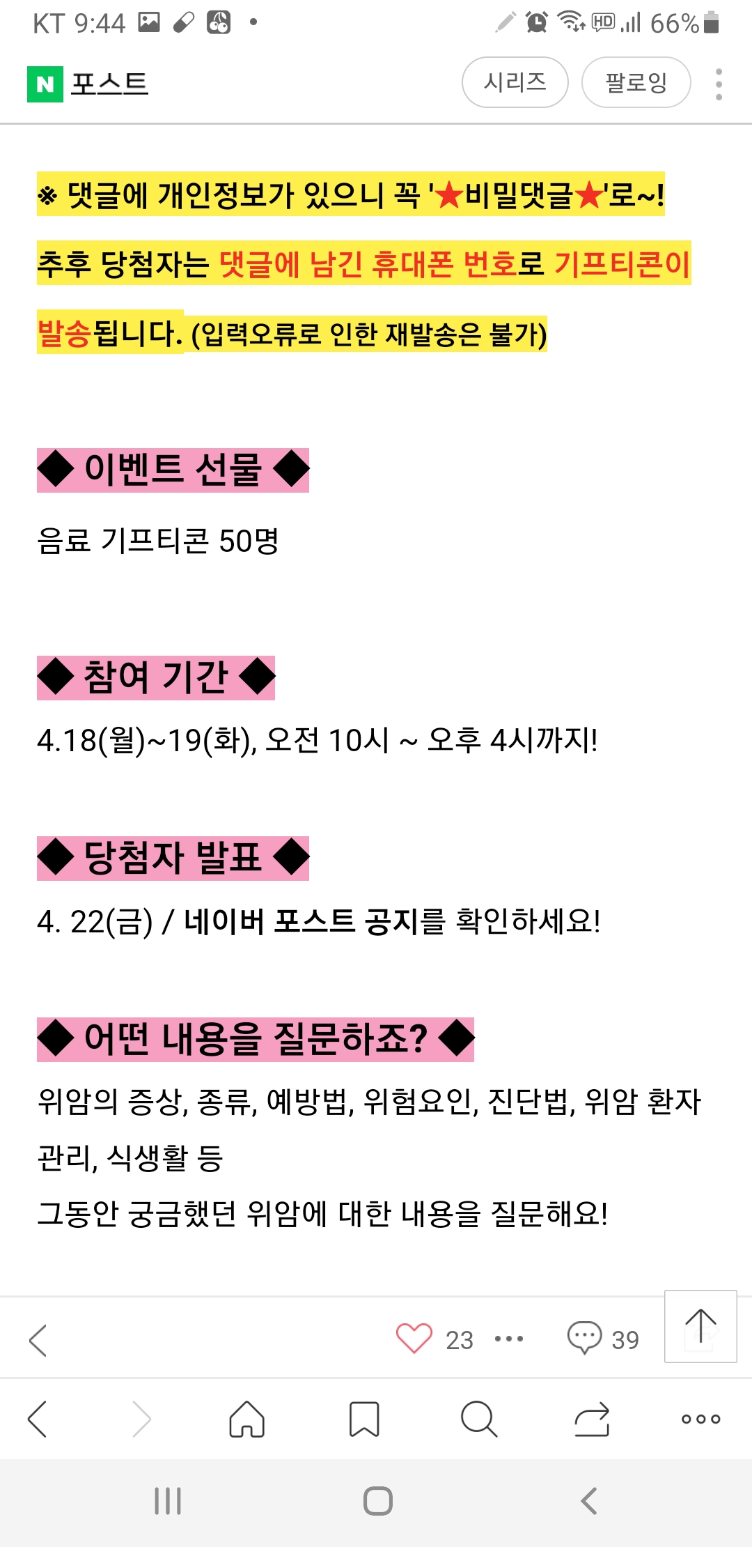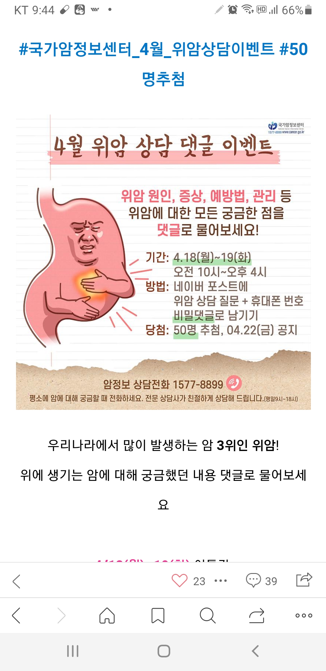 국가암정보센터 4월 위암 상담 댓글 이벤트 (~4.19) 작성자난이언니|작성시간22.04.18|조회수251 목록 댓글 0 글자크기 작게가 글자크기 크게가 https://m.post.naver.com/viewer/postView.naver?volumeNo=33643243&memberNo=375893 다음검색 현재 게시글 추가 기능 열기 북마크 공유하기 신고 센터로 신고 댓글 댓글 0 댓글쓰기 답글쓰기 댓글 리스트