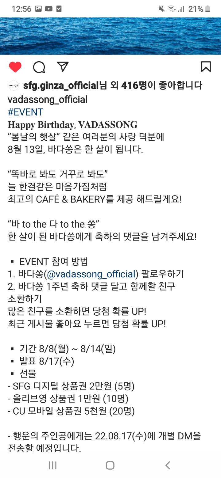 바다쏭 1주년 축하댓글 이벤트 (~8.14) 작성자나도쫌|작성시간22.08.11|조회수431 목록 댓글 3 글자크기 작게가 글자크기 크게가 https://www.instagram.com/p/Cg-rPh1LMPH/?igshid=YmMyMTA2M2Y= 다음검색 현재 게시글 추가 기능 열기 북마크 공유하기 신고 센터로 신고 댓글 댓글 3 댓글쓰기 답글쓰기 댓글 리스트 작성자네오베르베르 | 작성시간 22.08.11 감사합니다 작성자아오이유우 | 작성시간 22.08.14 감사합니다 ❤ 작성자뽀롱이1 | 작성시간 22.08.15 감사합니다 댓글 전체보기