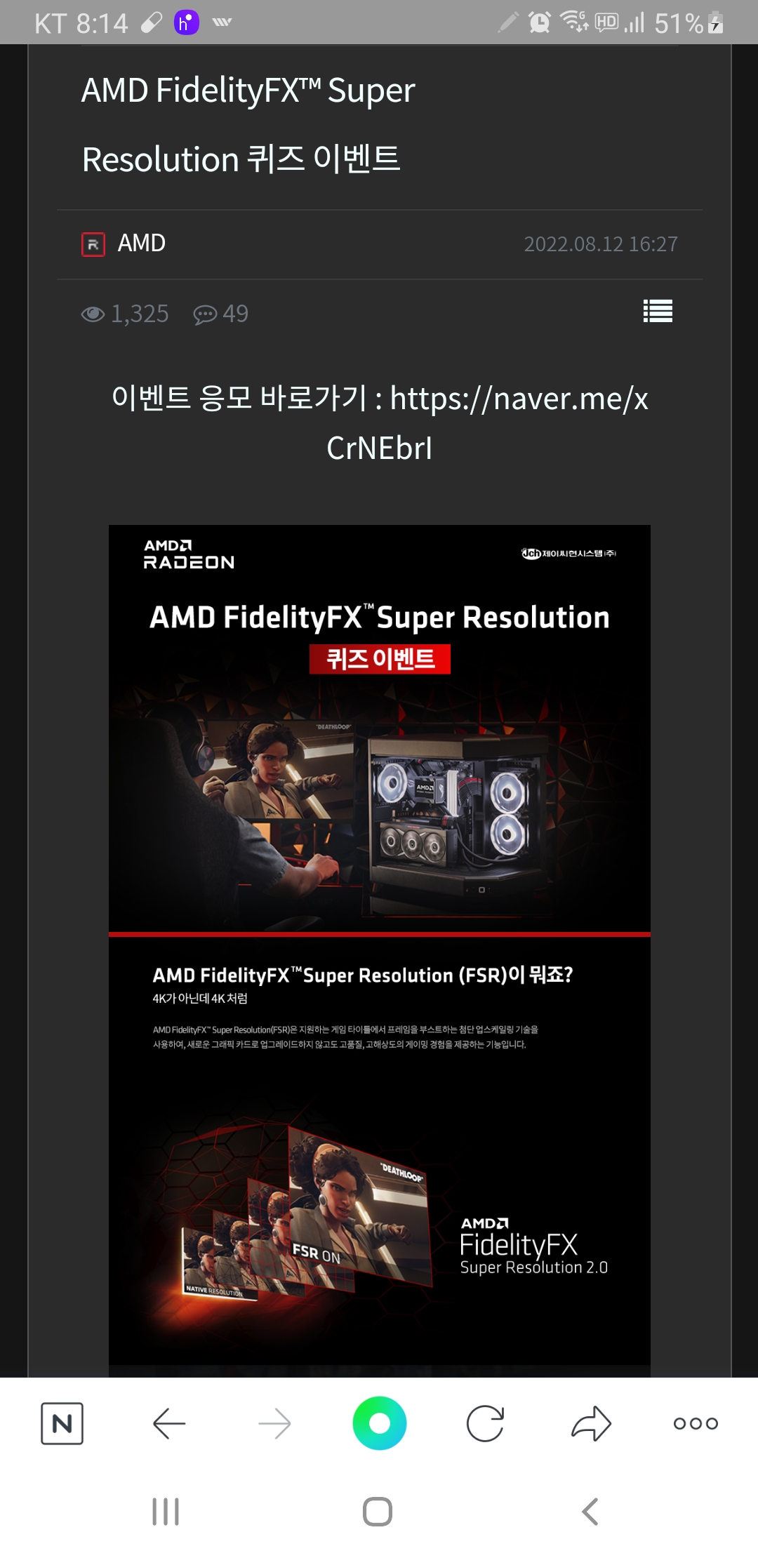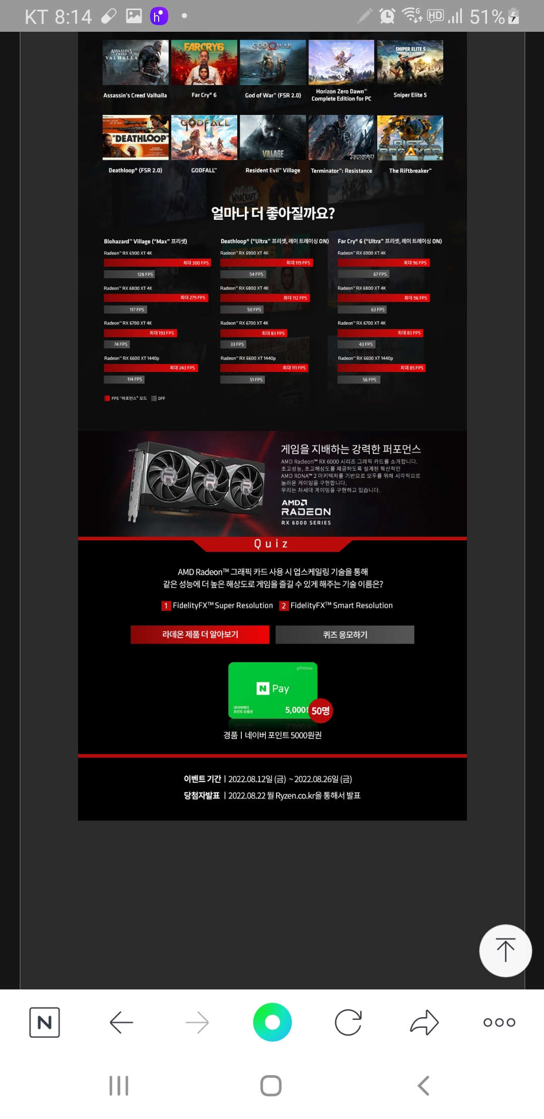 라이젠 AMD Fidelity FX Super Resolution 퀴즈이벤트(~8.26) 작성자난이언니|작성시간22.08.15|조회수1,291 목록 댓글 2 글자크기 작게가 글자크기 크게가 https://ryzen.co.kr/promotion/7569 #1 다음검색 현재 게시글 추가 기능 열기 북마크 공유하기 신고 센터로 신고 댓글 댓글 2 댓글쓰기 답글쓰기 댓글 리스트 작성자초초 | 작성시간 22.08.15 감사합니다 작성자Garlic05 | 작성시간 22.08.15 감사합니다. 댓글 전체보기
