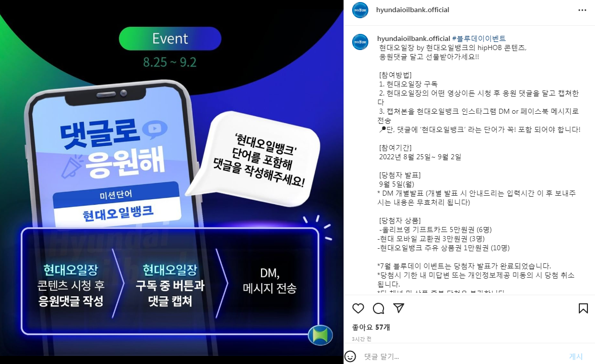 현대오일뱅크 블루데이 이벤트 ~9.2 작성자야콩|작성시간22.08.25|조회수355 목록 댓글 1 글자크기 작게가 글자크기 크게가 https://www.instagram.com/p/ChqjnZcKe-8/ 다음검색 현재 게시글 추가 기능 열기 북마크 공유하기 신고 센터로 신고 댓글 댓글 1 댓글쓰기 답글쓰기 댓글 리스트 작성자Garlic05 | 작성시간 22.08.27 감사합니다. 댓글 전체보기