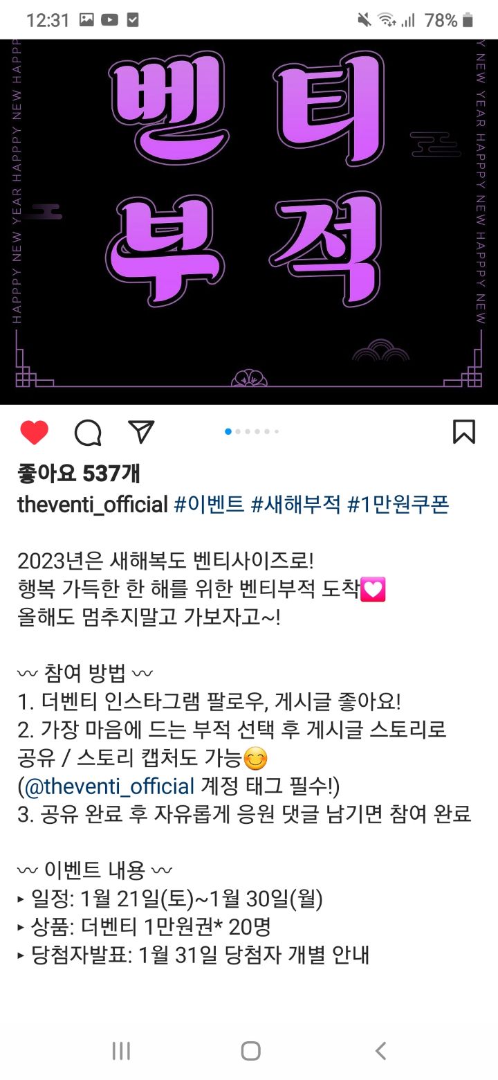 벤티 부적 이벤트 (~1.30) 작성자나도쫌|작성시간23.01.22|조회수245 목록 댓글 0 글자크기 작게가 글자크기 크게가 https://www.instagram.com/p/CnqpeBnBuqm/?igshid=YmMyMTA2M2Y= 다음검색 현재 게시글 추가 기능 열기 북마크 공유하기 신고 센터로 신고 댓글 댓글 0 댓글쓰기 답글쓰기 댓글 리스트