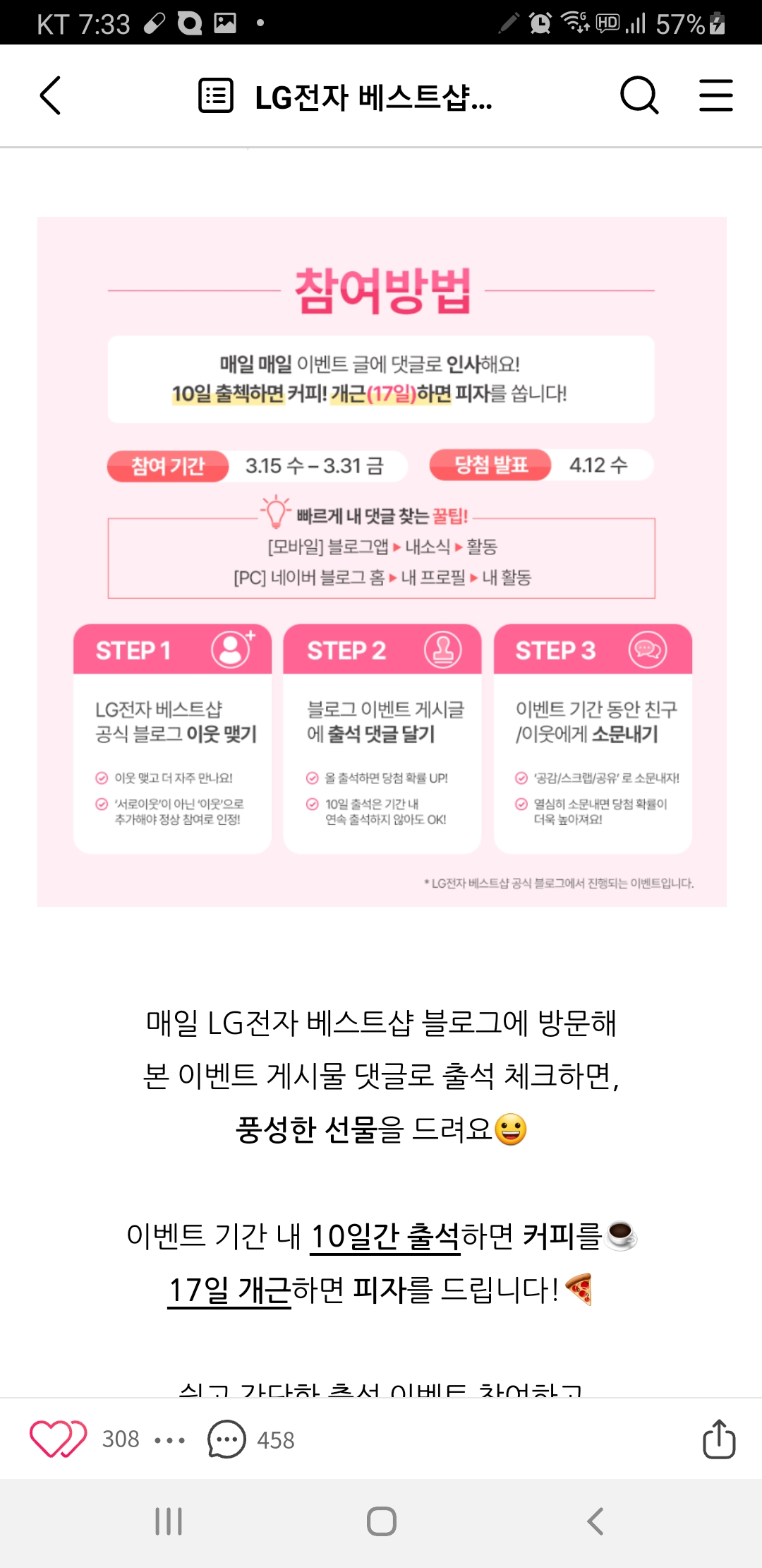 LG전자베스트샵 출석체크 이벤트 (~3.31) 작성자난이언니|작성시간23.03.16|조회수219 목록 댓글 0 글자크기 작게가 글자크기 크게가 https://m.blog.naver.com/lg-bestshop/223045440637 다음검색 현재 게시글 추가 기능 열기 북마크 공유하기 신고 센터로 신고 댓글 댓글 0 댓글쓰기 답글쓰기 댓글 리스트