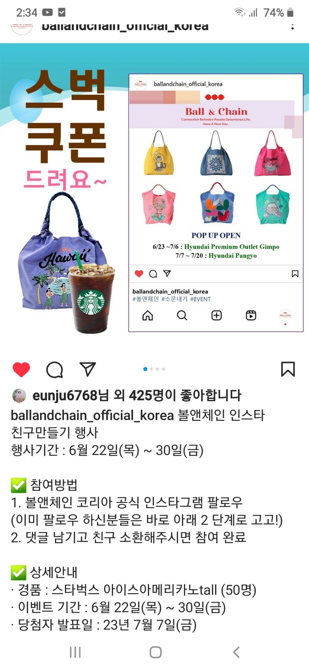 볼앤체인 인스타그램 팔로우 이벤트 (~6.30) 작성자나도쫌|작성시간23.06.30|조회수118 목록 댓글 2 글자크기 작게가 글자크기 크게가 https://www.instagram.com/p/CtyNHyUPu78/?igshid=MzRlODBiNWFlZA== 다음검색 현재 게시글 추가 기능 열기 북마크 공유하기 신고 센터로 신고 댓글 댓글 2 댓글쓰기 답글쓰기 댓글 리스트 작성자오목눈이 | 작성시간 23.06.30 감사합니다 작성자네오베르베르 | 작성시간 23.07.01 감사합니다 댓글 전체보기