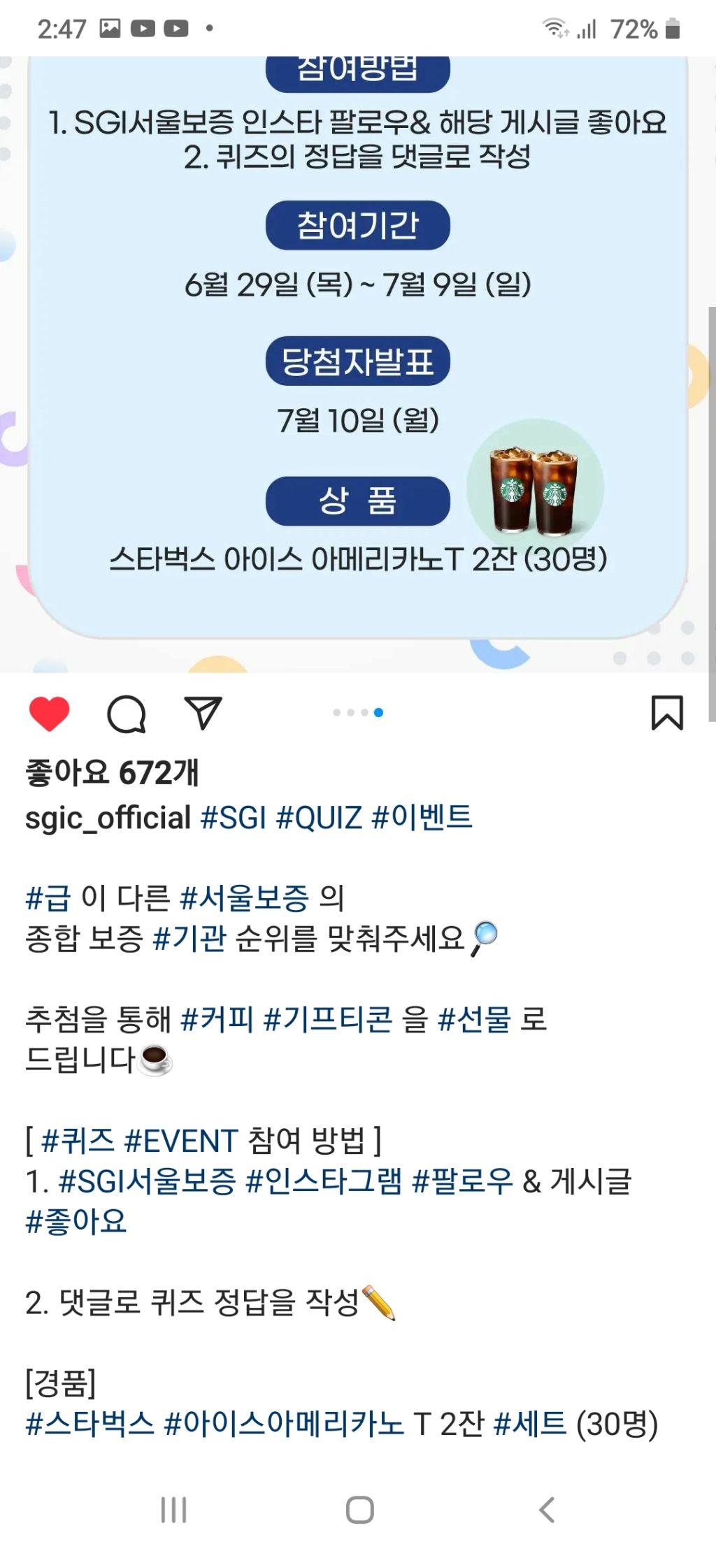 SGI서울보증 퀴즈 이벤트 (~7.9) 작성자나도쫌|작성시간23.06.30|조회수246 목록 댓글 3 글자크기 작게가 글자크기 크게가 https://www.instagram.com/p/CuDlaLNSJrq/?igshid=MzRlODBiNWFlZA== 다음검색 현재 게시글 추가 기능 열기 북마크 공유하기 신고 센터로 신고 댓글 댓글 3 댓글쓰기 답글쓰기 댓글 리스트 작성자Garlic05 | 작성시간 23.06.30 감사합니다. 작성자네오베르베르 | 작성시간 23.07.01 감사합니다 작성자스무디퀸 | 작성시간 23.07.06 ㅇㅁ ㄳ 댓글 전체보기