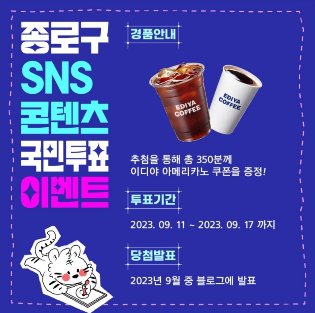 종로통, 종로구 2023 SNS 콘텐츠 국민투표 이벤트 (~9.17) 작성자유운이|작성시간23.09.11|조회수185 목록 댓글 2 글자크기 작게가 글자크기 크게가 https://blog.naver.com/jongno0401/2232057957522023 종로구 SNS 콘텐츠 국민투표 이벤트 (이모티콘 부문)‘2023년 종로구 SNS 콘텐츠 공모전’ 이모티콘 부분 후보작을 소개합니다. 순서는 작품명 (가나다순) ...blog.naver.com 다음검색 현재 게시글 추가 기능 열기 북마크 공유하기 신고 센터로 신고 댓글 댓글 2 댓글쓰기 답글쓰기 댓글 리스트 작성자스무디퀸 | 작성시간 23.09.13 ㅇㅁ ㄳ 작성자광어 | 작성시간 23.09.14 정보 감사합니다. 댓글 전체보기