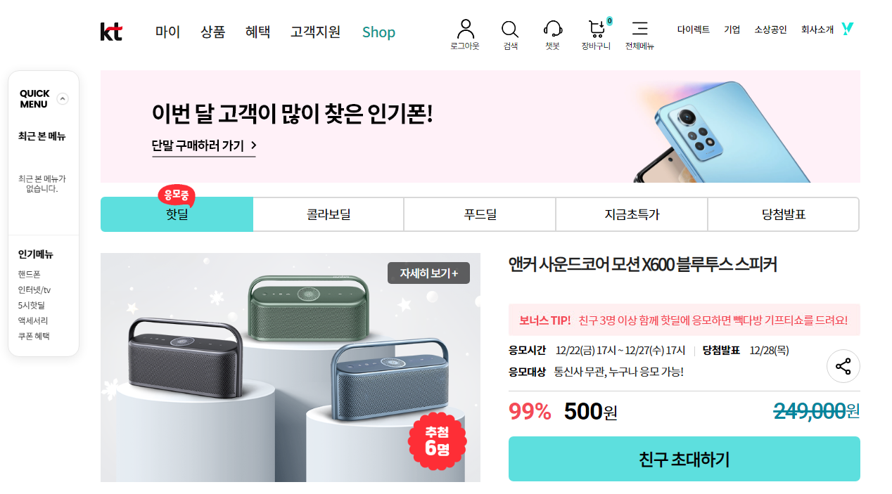 KT Shop, 핫딜 앤커 사운드코어 모션 X600 블루투스 스피커 6명 (~12.27 17시) 작성자유운이|작성시간23.12.24|조회수151 목록 댓글 1 글자크기 작게가 글자크기 크게가 https://shop.kt.com/deal/deal5g.do?dwt=tue 다음검색 현재 게시글 추가 기능 열기 북마크 공유하기 신고 센터로 신고 댓글 댓글 1 댓글쓰기 답글쓰기 댓글 리스트 작성자네오베르베르 | 작성시간 23.12.24 감사합니다 댓글 전체보기