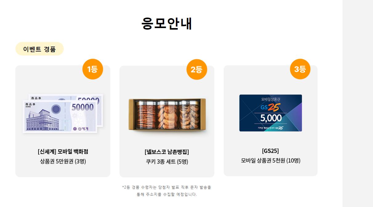 정식품, 홍보왕은 누구? 웹진 이벤트 (~3.31) 작성자유운이|작성시간24.02.17|조회수178 목록 댓글 1 글자크기 작게가 글자크기 크게가 https://www.vegemil.co.kr/main/webzine/events/event_Q1_2024.aspx정식품 웹진 이벤트TIP * 한가지 이벤트만 참여해도 응모 가능합니다.단, 두 이벤트에 모두 참여시 알찬 경품 당첨 확률 UP! * 정식품 웹진 구독하면 당첨 확률 UP! * 웹진 공유 시 제목 및 본문에 <정식품 웹진> 키워드www.vegemil.co.kr 다음검색 현재 게시글 추가 기능 열기 북마크 공유하기 신고 센터로 신고 댓글 댓글 1 댓글쓰기 답글쓰기 댓글 리스트 작성자네오베르베르 | 작성시간 24.02.17 감사합니다 댓글 전체보기