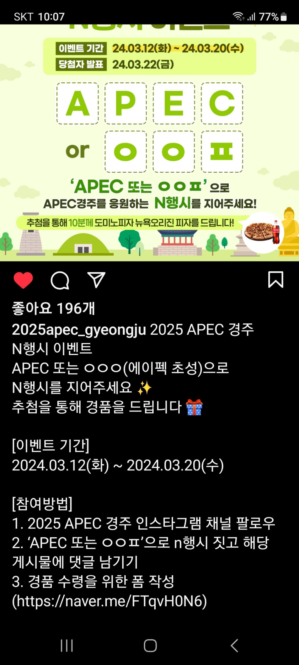 2025 APEC 경주 N행시 이벤트 (~3.20) 작성자나도쫌|작성시간24.03.16|조회수216 목록 댓글 0 글자크기 작게가 글자크기 크게가 https://www.instagram.com/p/C4ZOVBcurOO/?igsh=bGpjOW53a3FsYW9w 다음검색 현재 게시글 추가 기능 열기 북마크 공유하기 신고 센터로 신고 댓글 댓글 0 댓글쓰기 답글쓰기 댓글 리스트