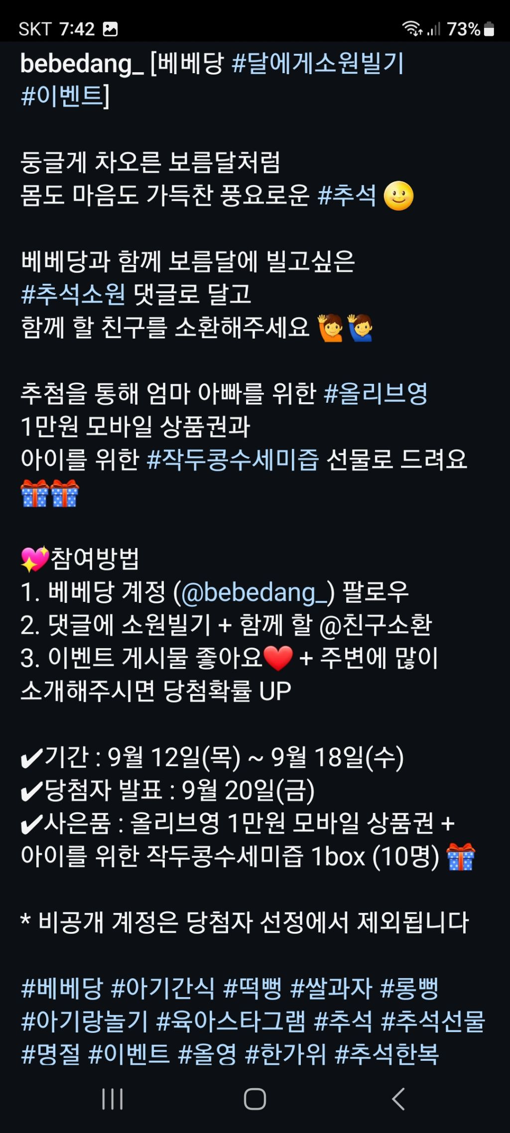 베베당 달에게 소원빌기 (~9.18) 작성자나도쫌|작성시간24.09.17|조회수108 목록 댓글 1 글자크기 작게가 글자크기 크게가 https://www.instagram.com/p/C_zEFBmIJik/?igsh=d2xyam80NG9ibmEz 다음검색 현재 게시글 추가 기능 열기 북마크 공유하기 신고 센터로 신고 댓글 댓글 1 댓글쓰기 답글쓰기 댓글 리스트 작성자Garlic05 | 작성시간 24.09.17 감사합니다. 댓글 전체보기