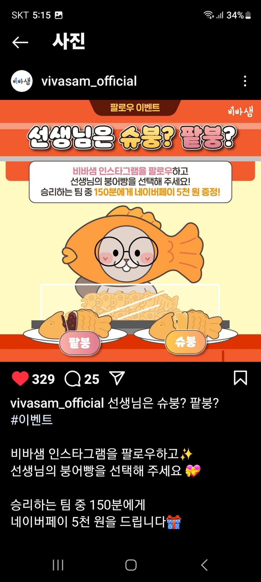 비바샘 슈붕? 팥붕?(~12.18) 작성자나도쫌|작성시간24.12.14|조회수131 목록 댓글 1 글자크기 작게가 글자크기 크게가 https://www.instagram.com/share/p/_ik8dlcD6 다음검색 현재 게시글 추가 기능 열기 북마크 공유하기 신고 센터로 신고 댓글 댓글 1 댓글쓰기 답글쓰기 댓글 리스트 작성자Garlic05 | 작성시간 24.12.15 감사합니다. 댓글 전체보기