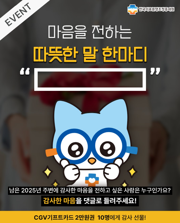 한국의료분쟁조정중재원 감사의 한마디를 남겨주세요 ~12.28 작성자야콩|작성시간25.12.23|조회수119 목록 댓글 3 글자크기 작게가 글자크기 크게가 https://www.instagram.com/p/DSljTqBDwHd/로그인 • Instagramwww.instagram.com 다음검색 현재 게시글 추가 기능 열기 북마크 공유하기 신고 센터로 신고 댓글 댓글 3 댓글쓰기 답글쓰기 댓글 리스트 작성자Garlic05 | 작성시간 25.12.23 감사합니다. 작성자네오베르베르 | 작성시간 25.12.23 감사합니다 작성자아오이유우 | 작성시간 25.12.24 감사합니다 댓글 전체보기
