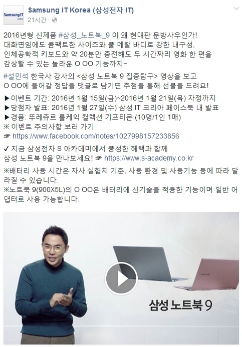 이벤트글 바로가기 : https://www.facebook.com/SamsungITKorea/videos/vb.130282737031996/1030179543708973/?type=2&theater