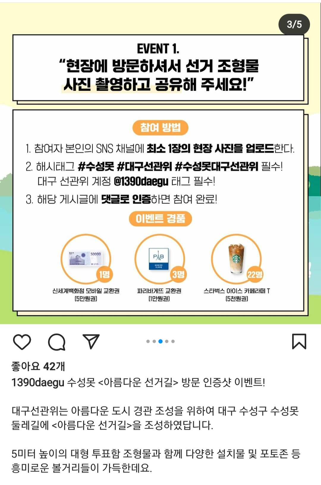 대구광역시 선거관리위원회 방문 인증샷 이벤트 (~5.22) 작성자난이언니|작성시간22.05.08|조회수79 목록 댓글 0 글자크기 작게가 글자크기 크게가 https://www.instagram.com/p/CdNTRQ3r8mF/?igshid=YmMyMTA2M2Y= 다음검색 현재 게시글 추가 기능 열기 북마크 공유하기 신고 센터로 신고 댓글 댓글 0 댓글쓰기 답글쓰기 댓글 리스트