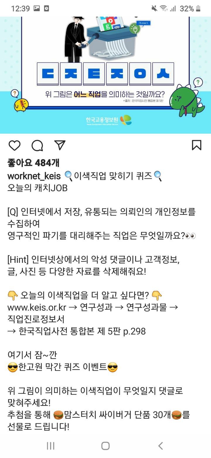 한국고용정보원. 이색직업맞히기 퀴즈(~8.21) 작성자나도쫌|작성시간22.08.18|조회수300 목록 댓글 1 글자크기 작게가 글자크기 크게가 https://www.instagram.com/p/ChV2T3msslS/?igshid=YmMyMTA2M2Y= 다음검색 현재 게시글 추가 기능 열기 북마크 공유하기 신고 센터로 신고 댓글 댓글 1 댓글쓰기 답글쓰기 댓글 리스트 작성자뽀롱이1 | 작성시간 22.08.21 감사합니다 댓글 전체보기