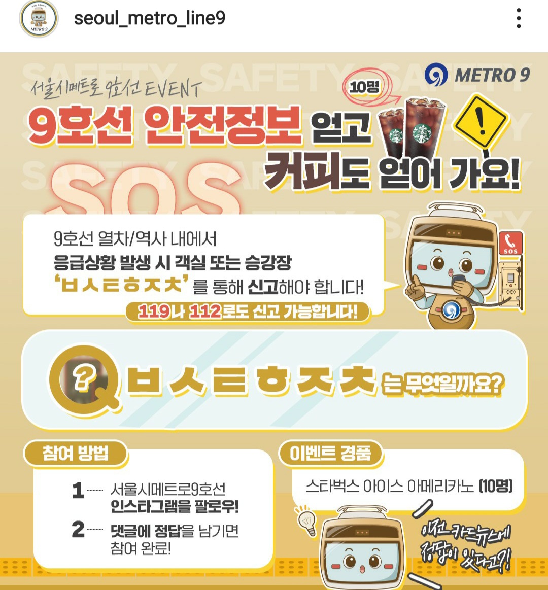 서울시메트로9호선 초성퀴즈이벤트 (~11.29) 작성자난이언니|작성시간22.11.28|조회수355 목록 댓글 0 글자크기 작게가 글자크기 크게가 https://www.instagram.com/p/ClVwwR-Ppyc/?igshid=YmMyMTA2M2Y= 다음검색 현재 게시글 추가 기능 열기 북마크 공유하기 신고 센터로 신고 댓글 댓글 0 댓글쓰기 답글쓰기 댓글 리스트