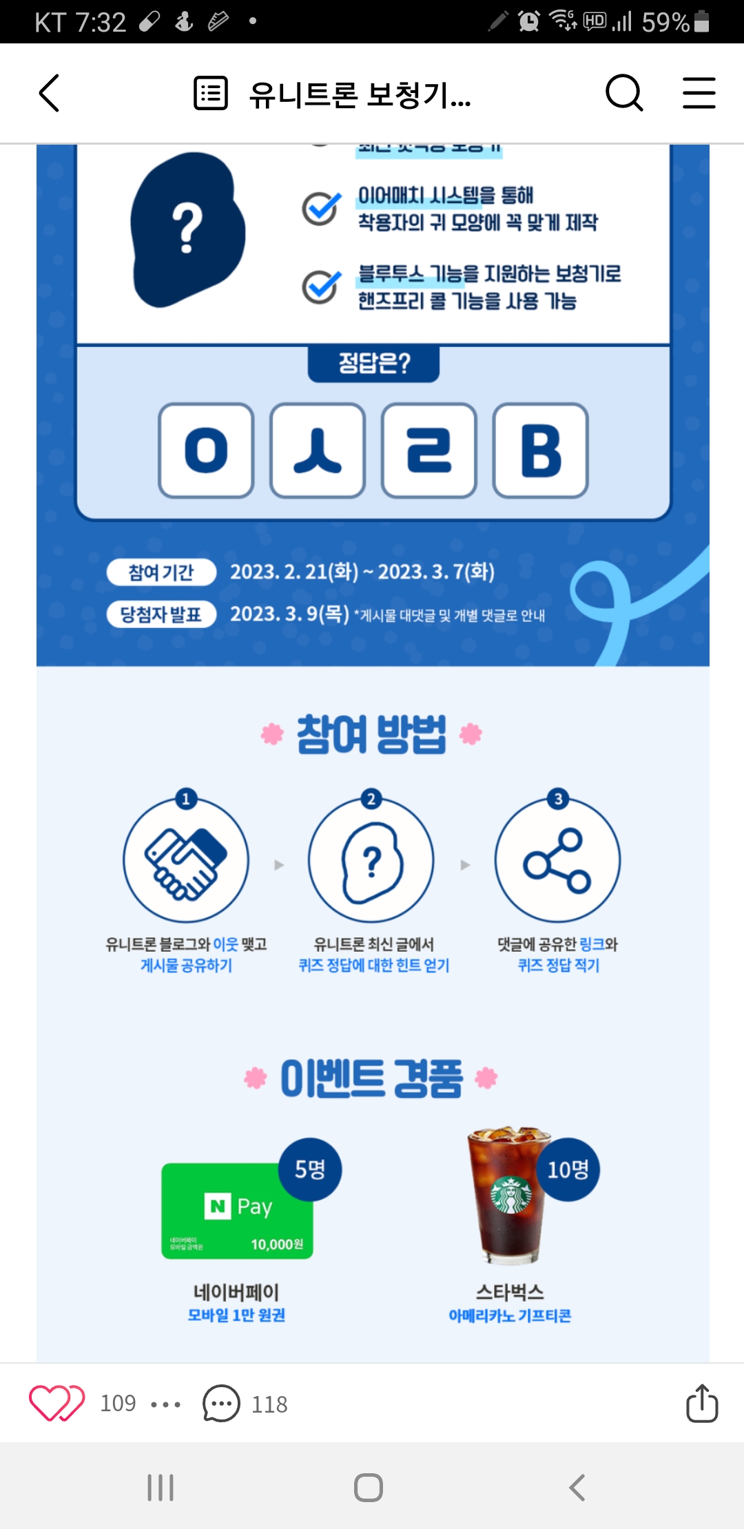 유니트론 퀴즈이벤트 (~3.7) 작성자난이언니|작성시간23.02.22|조회수172 목록 댓글 0 글자크기 작게가 글자크기 크게가 https://m.blog.naver.com/unitronhearing/223023033869 다음검색 현재 게시글 추가 기능 열기 북마크 공유하기 신고 센터로 신고 댓글 댓글 0 댓글쓰기 답글쓰기 댓글 리스트