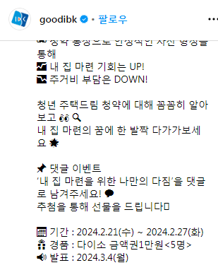 IBK기업은행 내 집 마련을 위한 나만의 다짐 이벤트 ~2.27 작성자야콩|작성시간24.02.24|조회수113 목록 댓글 0 글자크기 작게가 글자크기 크게가 https://www.instagram.com/p/C3mm5hGvmcE/?igsh=MTVoNTRrbHZpMjM2aQ%3D%3D 다음검색 현재 게시글 추가 기능 열기 북마크 공유하기 신고 센터로 신고 댓글 댓글 0 댓글쓰기 답글쓰기 댓글 리스트