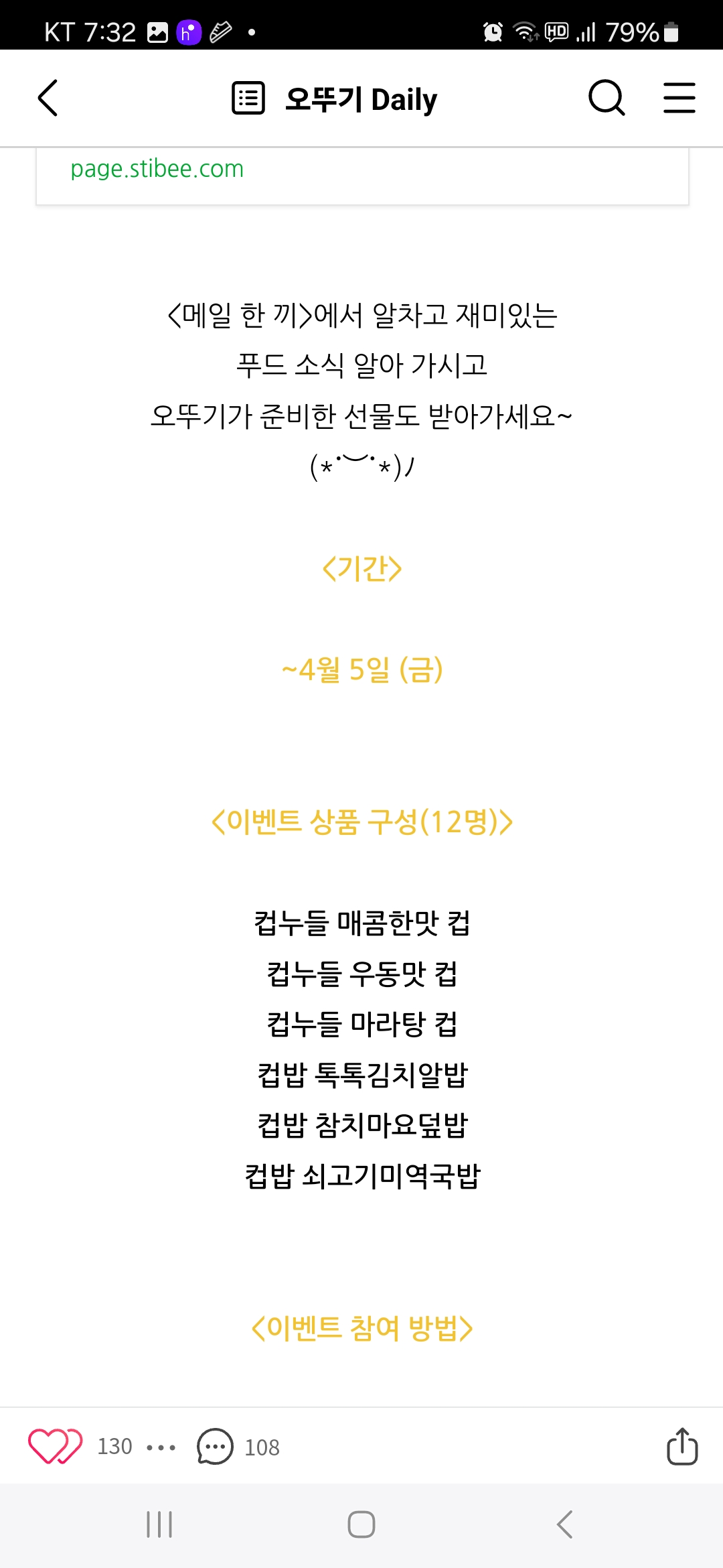 오뚜기 메일한끼 구독이벤트 (~4.5) 작성자난이언니|작성시간24.03.26|조회수167 목록 댓글 1 글자크기 작게가 글자크기 크게가 https://m.blog.naver.com/ottogitoday1/223394903974 다음검색 현재 게시글 추가 기능 열기 북마크 공유하기 신고 센터로 신고 댓글 댓글 1 댓글쓰기 답글쓰기 댓글 리스트 작성자내마음대로당첨^^ | 작성시간 24.03.27 감사합니다. 댓글 전체보기