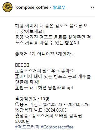 컴포즈커피 컴포즈를 찾아라 ~5.29 작성자야콩|작성시간24.05.24|조회수136 목록 댓글 0 글자크기 작게가 글자크기 크게가 https://www.instagram.com/p/C7Sx8DnqgRi/?igsh=MTB4YW05dWFodzY3dg%3D%3D 다음검색 현재 게시글 추가 기능 열기 북마크 공유하기 신고 센터로 신고 댓글 댓글 0 댓글쓰기 답글쓰기 댓글 리스트