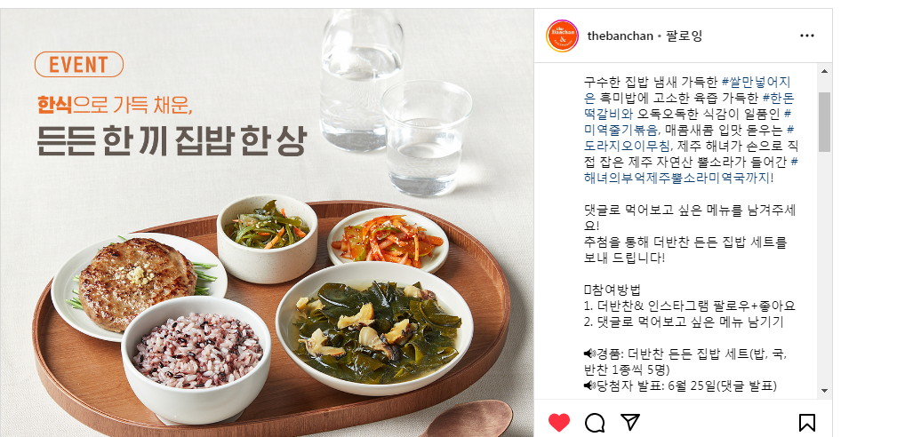 더반찬, 든든 한 끼 집밥 한 상먹고 싶은 메뉴 댓글 이벤트 (~6.24) 작성자유운이|작성시간24.06.20|조회수67 목록 댓글 0 글자크기 작게가 글자크기 크게가 https://www.instagram.com/p/C8YramvtX2J/ 다음검색 현재 게시글 추가 기능 열기 북마크 공유하기 신고 센터로 신고 댓글 댓글 0 댓글쓰기 답글쓰기 댓글 리스트