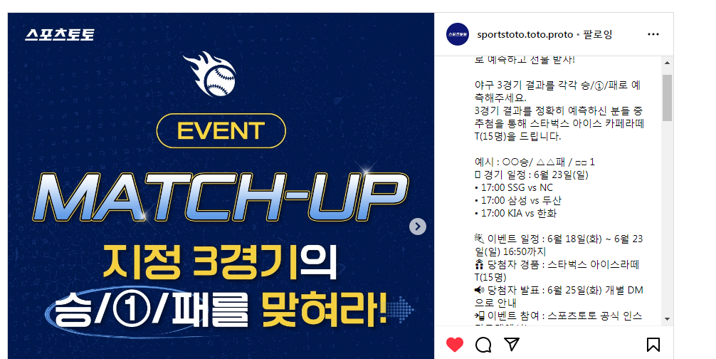 스포츠토토, 프로야구 세 경기 승 패 예측하고 선물 받자 (~6.23 16:50까지) 작성자유운이|작성시간24.06.23|조회수74 목록 댓글 0 글자크기 작게가 글자크기 크게가 https://www.instagram.com/p/C8WXziupvwr/?img_index=1 다음검색 현재 게시글 추가 기능 열기 북마크 공유하기 신고 센터로 신고 댓글 댓글 0 댓글쓰기 답글쓰기 댓글 리스트