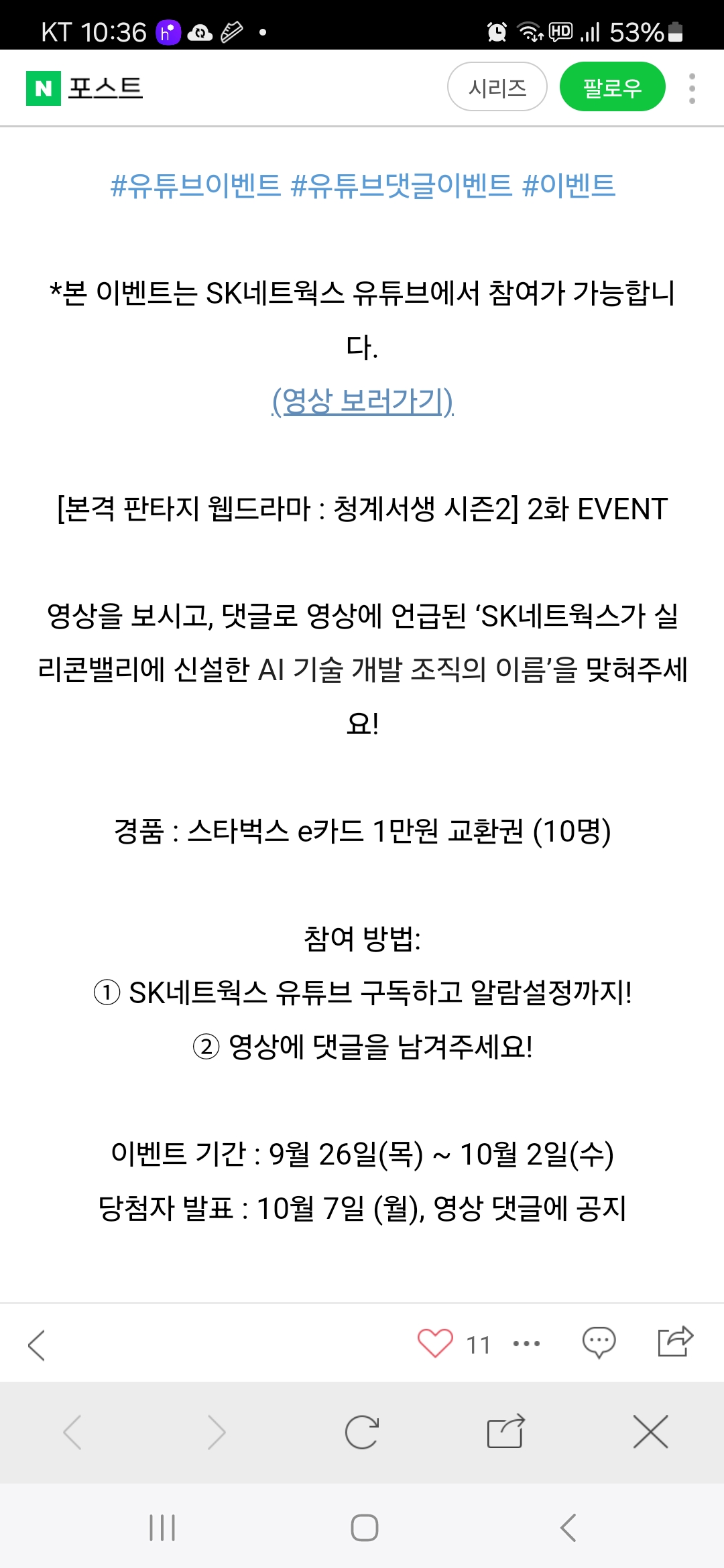 SK네트웍스 유튜브 댓글이벤트 (~10.2) 작성자난이언니|작성시간24.09.27|조회수92 목록 댓글 1 글자크기 작게가 글자크기 크게가 https://naver.me/5PVcmJDC 다음검색 현재 게시글 추가 기능 열기 북마크 공유하기 신고 센터로 신고 댓글 댓글 1 댓글쓰기 답글쓰기 댓글 리스트 작성자알뜰아줌 | 작성시간 24.09.27 감사합니다. 댓글 전체보기