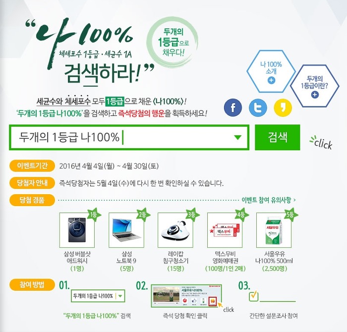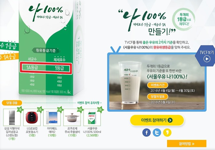 이벤트주소 : http://promotion.seoulmilk.co.kr/campaign/na100/web/index.asp