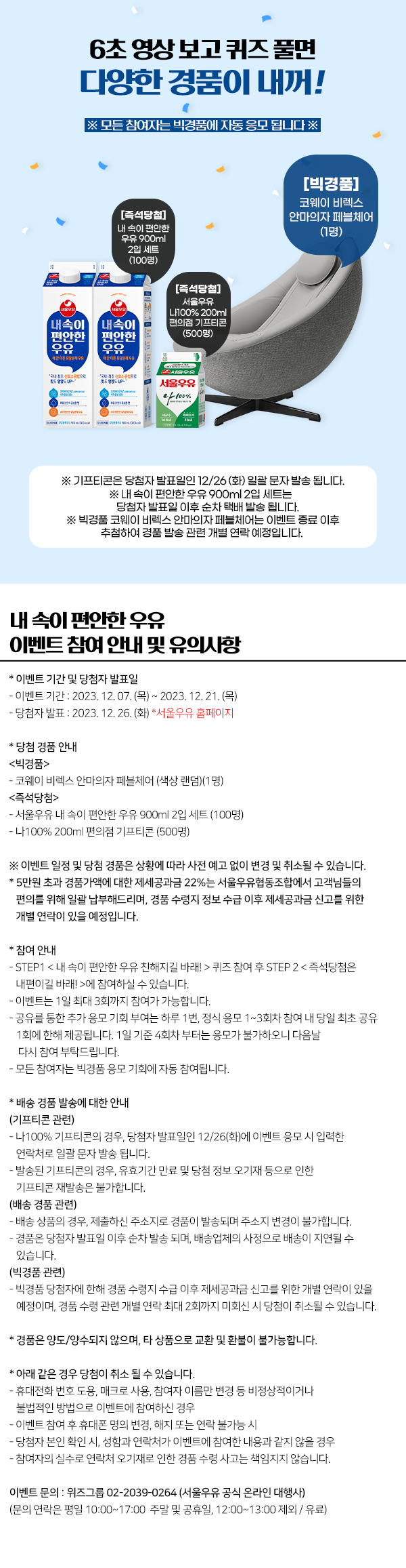 서울우유 내속이편안한우유 (~12.21) 작성자나도쫌|작성시간23.12.07|조회수1,104 목록 댓글 1 글자크기 작게가 글자크기 크게가 내 속이 편안한 우유 “편안해지길 바래!” 이벤트서울우유 내 속이 편안한 우유 6초 영상 보고 퀴즈 맞히면?! 안마의자, 내 속이 편안한 우유, 우유 기프티콘이 내 꺼!promotion.seoulmilk.co.kr:446 다음검색 현재 게시글 추가 기능 열기 북마크 공유하기 신고 센터로 신고 댓글 댓글 1 댓글쓰기 답글쓰기 댓글 리스트 작성자스무디퀸 | 작성시간 23.12.21 ㅇㅁ ㄳ 댓글 전체보기