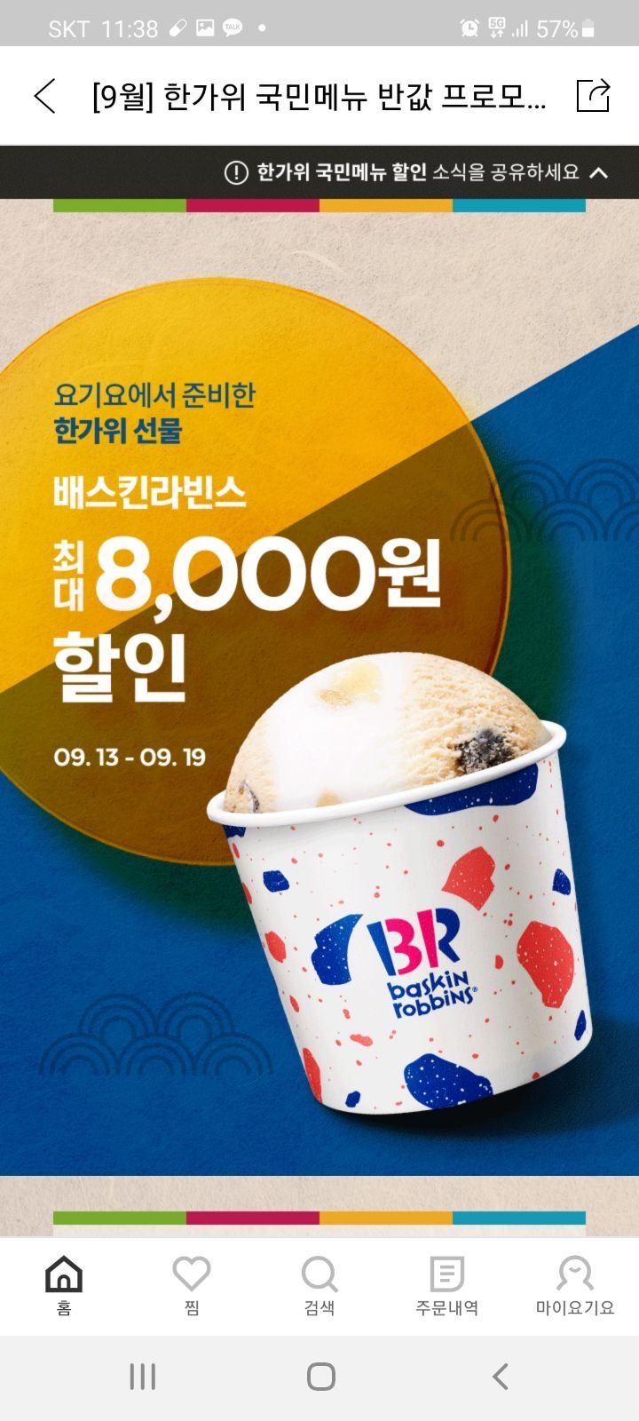 요기요 배스킨라빈스 5천원할인 작성자별이1852|작성시간21.09.13|조회수286 목록 댓글 0 글자크기 작게가 글자크기 크게가 '[9월] 한가위 국민메뉴 반값 프로모션 (배스킨라빈스)' 요기요 앱에서 확인해보세요.https://www.yogiyo.co.kr/ss/qTzHQm제목없음여기를 눌러 링크를 확인하세요app.adjust.com 다음검색 현재 게시글 추가 기능 열기 북마크 공유하기 신고 센터로 신고 댓글 댓글 0 댓글쓰기 답글쓰기 댓글 리스트