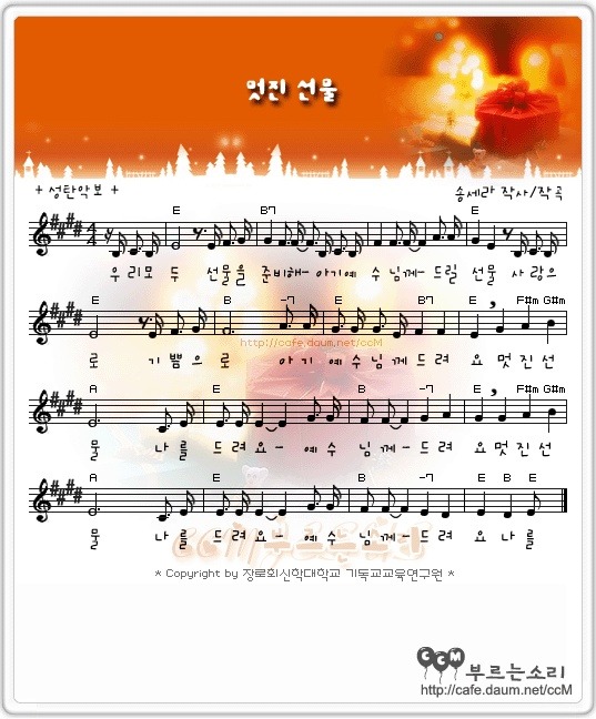 멋진선물-악보,mp3파일 작성자안녕하세효|작성시간10.11.27|조회수805 목록 댓글 0 글자크기 작게가 글자크기 크게가 멋진선물.jpg 멋진선물.mp3 첨부파일첨부된 파일이 3개 있습니다. jpg 파일 멋진선물.jpg jpg 파일 멋진선물.jpg mp3 파일 멋진선물.mp3 다음검색 현재 게시글 추가 기능 열기 북마크 공유하기 신고 센터로 신고 댓글 댓글 0 댓글쓰기 답글쓰기 댓글 리스트
