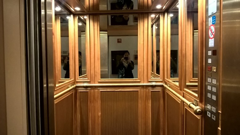 또 하나 인상적이었던 건 엘리베이터다. 딱 보기에도 고전의 느낌을 풍기고 있다는 걸 볼 수 있다. 내부 벽과 손잡이 모든 것 하나하나에 오랜 시간이 느껴졌다. 모든 것이 현대식인 요즘 이런 엘레베이터를 타보는 게 나를 마치 어린아이처럼 신나게 했다 ^^;
