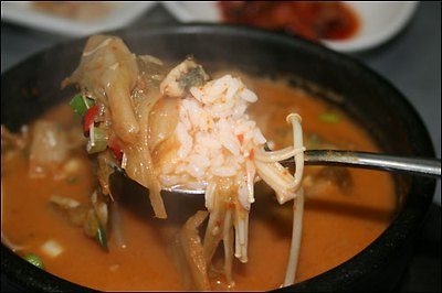 동자개탕은 국물 맛이 일품입니다. 한마디로 끝내줍니다. 솥단지에서 한번 끓여내 다시 조리용 뚝배기에 옮겨 담아 팽이버섯을 넣고 홍고추와 청고추 등으로 고명을 올렸습니다. 뚝배기에서 설설 끓고 있는 때깔 좋은 동자개탕은 보기만 해도 군침이 돕니다.