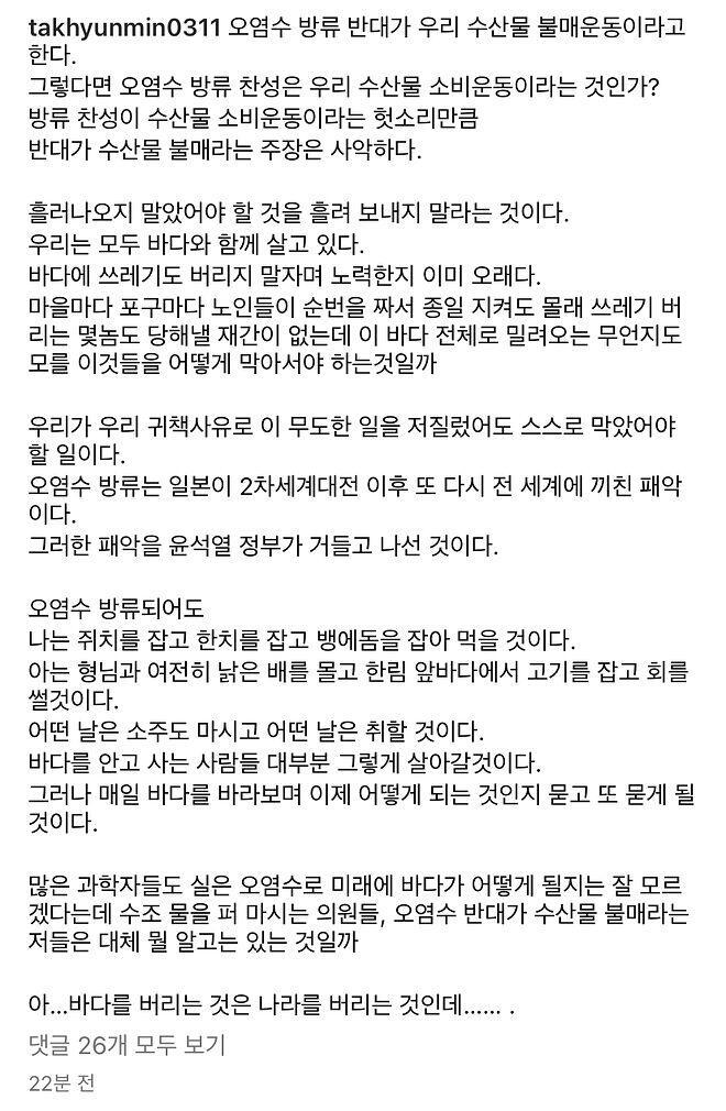 지구생태계 파괴에 대한 미국/일본의 '원죄'에 대한민국도 동참했다는게 시대적 비극입니다. 역사는 앞으로 이 세나라를 바다환경 방사능 오염의 죄인으로 기록하겠죠. 그리고 그것은 미래의 대한민국에 지울 수 없는 멍자국으로 남을 것입니다.