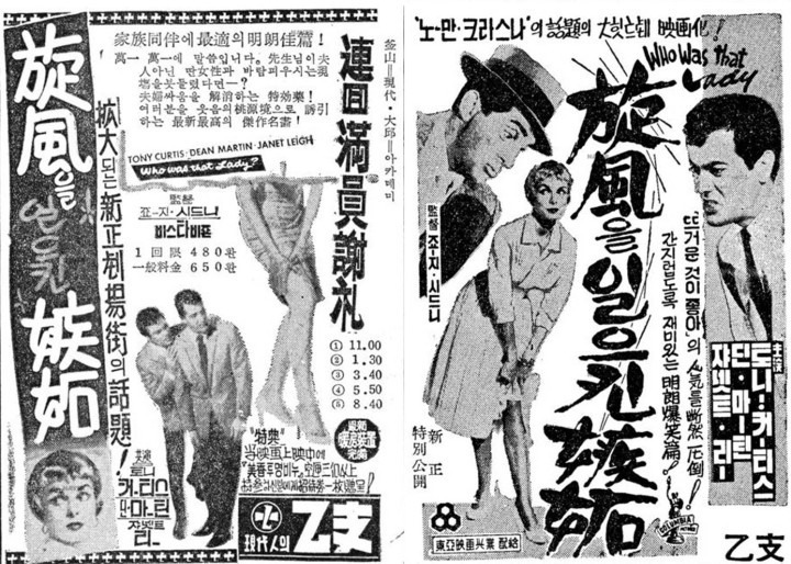 선풍을 일으킨 질투(Who Was That Lady? 60년) 출연 : 토니 커티스, 딘 마틴, 자넷 리 제임스 휘트모어, 존 맥인타