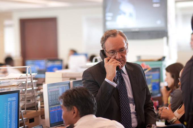 2. 마진 콜 : 24시간, 조작된 진실 (2011) <마진 콜: 24시간, 조작된 진실>(이하 <마진 콜>)에는 어려운 용어가 등장하지 않는다. 경제 용어 대신 영화가 전하는 건 분위기다. 그 분위기는 엄청 살벌하다. 영화는 2008년 금융 위기 사태가 벌어지는 월스트리트의 (리먼 브러더스가 연상되는) 한 금융사의 24시간을 다룬다. 주인공은 샘 로저스(케빈 스페이시)다. 회사의 부회장 정도 될까. 영화는 대량 정리해고된 직원들이 회사를 떠나는 장면에서 시작한다. 회사는 망할 위기에 놓였다. 보너스를 제하고도 연봉이 960억원쯤 되는 회장 존 털드(제레미 아이언스)는 임원들을 소집한다. 그들은 자신의 돈을 어떻게 하면 지킬 수 있을지 논의한다. 정리해고 된 직원들? 알 바 아니다. 이들은 결국 이렇게 결정한다. 자신들이 만든 (정확한 용어는 모르지만) ‘쓰레기 증권’을 다른 회사에 팔아버리기로 한 거다. 한마디로 폭탄 돌리기다. 자본주의 세계에서 절대 손해보지 않는 사람들. <마진 콜>을 연출한 J.C.챈더 감독은 일련의 과정을 특유의 분위기로 전한다. 설명하기 힘든 그 어떤 분위기, 돈을 쫓는 괴물을 보는 서늘한 기분을 만끽할 수 있다. 못지 않은 배우들의 연기도 볼거리다. 2012년 아카데미 영화제 각본상 수상작이다.