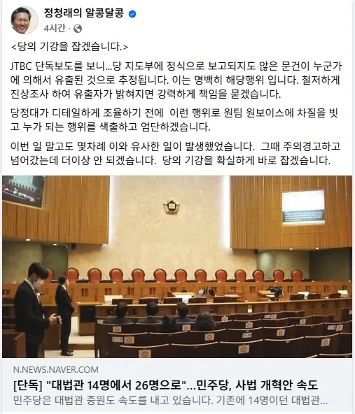 *클리앙) 정청래 대표가 칼을 뽑으려나 봅니다