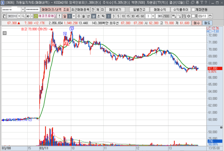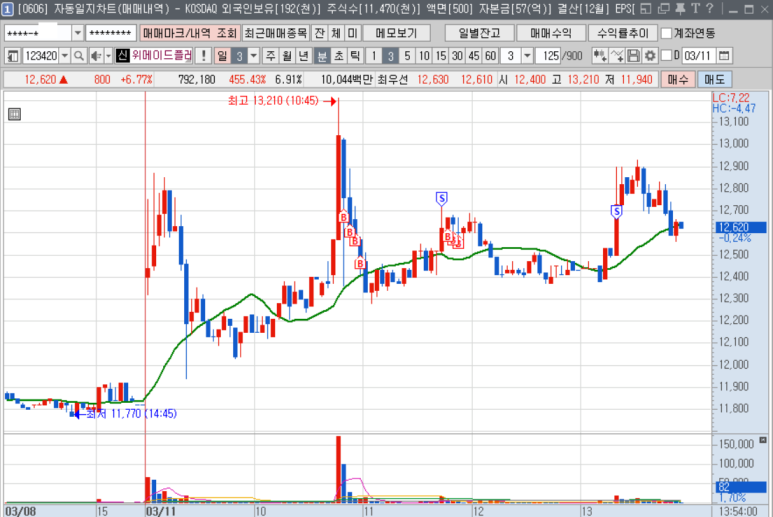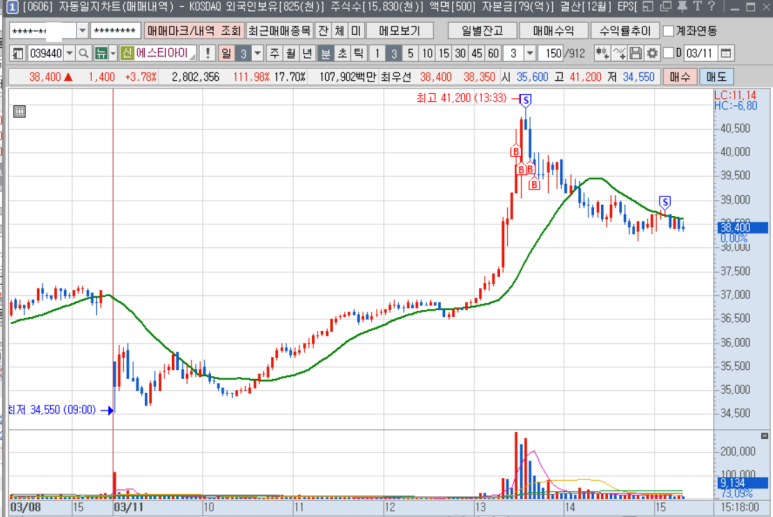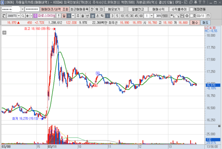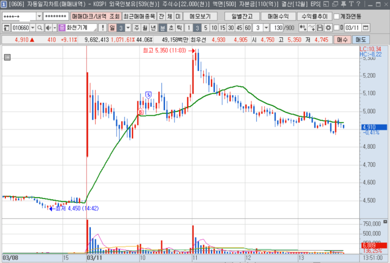 거래내역 자동 표시해주는 '일지차트'로 매매포인트만 간략히 표시합니다