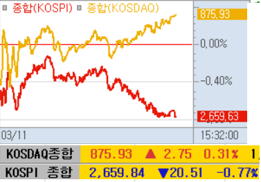 오늘 시장은 김빠진 맥주 같더니 ~ 코스피 코스닥 서로 제갈길 가버린 증시