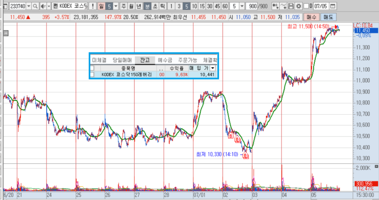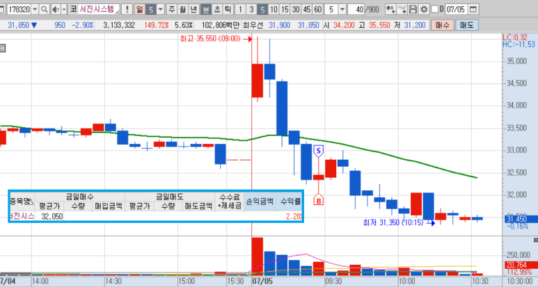 (붉은색 B는 매수, S는 매도 표시입니다)