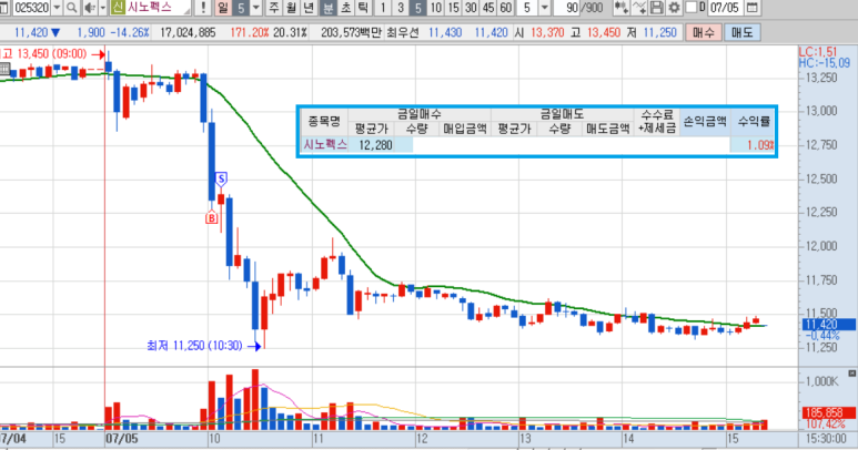 ㅇ 오늘의 최원철 데이트레이딩 거래 일지차트
