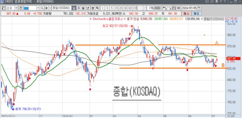 코스닥 시장은 ?? 아직 박스권에 갖혀있는듯~