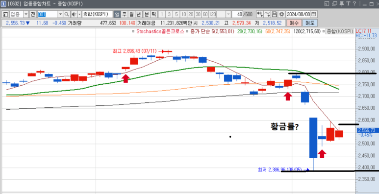 결과론적으로 오늘 주가는 후반에 내려 일단은 황금률이 완t상된격입니다
