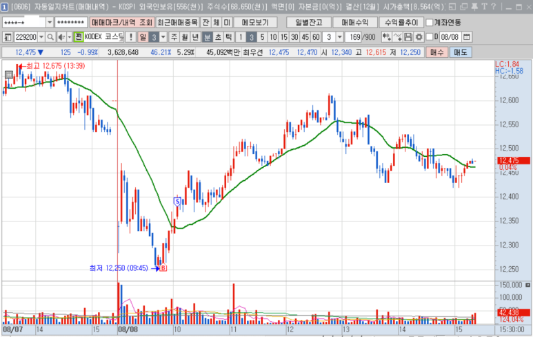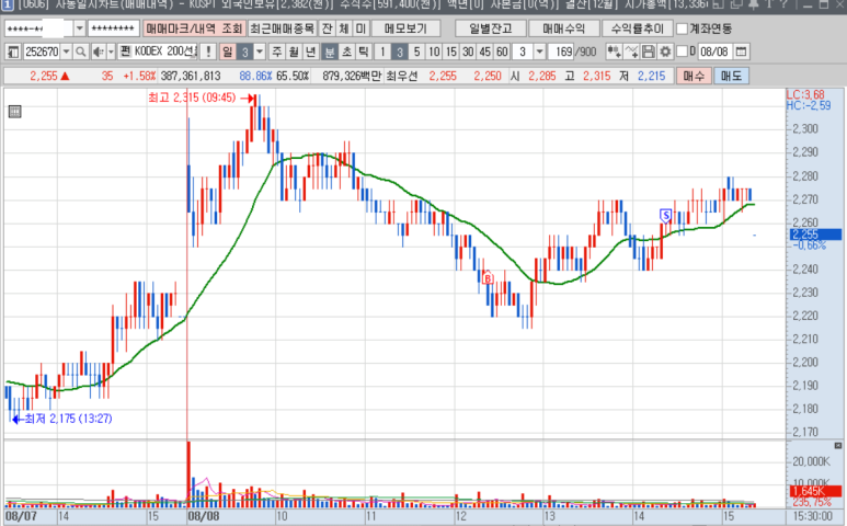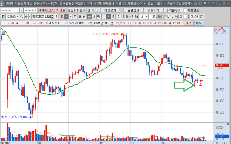 KODEX레버리지 오버나잇한 것은 장개장후 지켜보며 곧 대응을 해야겠다는 생각을 굳힘