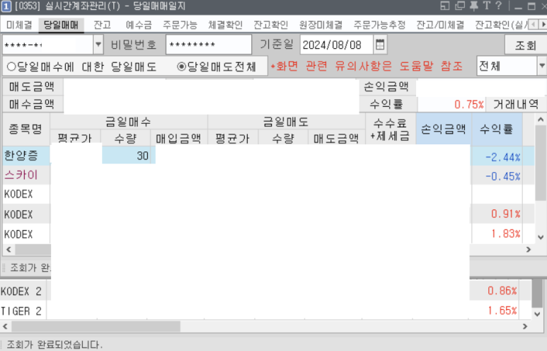하루거래 데이트레이딩 투자 성과로 은행 이자의 몇 배가 됩니다 이런 것이 데이트레이딩 매력이겠죠 음~ 짭짤하죠,,