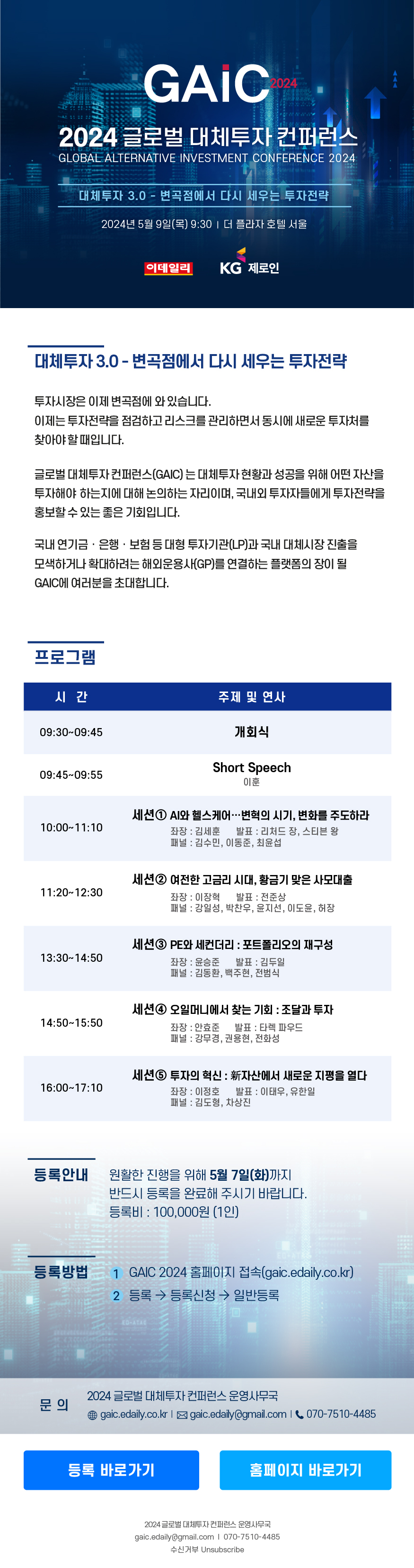 - 행사명 : 2024 이데일리 글로벌 대체투자 컨퍼런스(GAIC 2024)