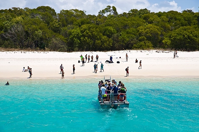 화이트헤븐 비치 주변은 산호초 군락을 이루고 있고 수심도 얕아 크루즈를 접안할 수 없다. 그래서 해변에 다다르면 작은 보트로 여러 번 관광객들을 옮겨 실어 나른다.