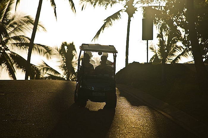운치 있는 일몰의 버기 산책, 헤밀턴 섬 전체가 워낙 넓어 섬을 이동할 때는 버기카를 이용해야 한다. 2인승, 4인승 이용가능.