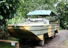 열대 우림 깊숙히 아미덕이라는 차량을 타고 들어가 식물과 동물에 대해 가이드 투어 |