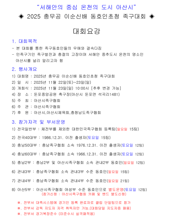 [스크랩] 2025 충무공 이순신배 동호인 초청 족구대회 대회요강 작성자황동록|작성시간25.11.07|조회수9 목록 댓글 0 글자크기 작게가 글자크기 크게가 다음검색 스크랩 원문 : 아산시 족구 협회 현재 게시글 추가 기능 열기 북마크 공유하기 신고 센터로 신고 댓글 댓글 0 댓글쓰기 답글쓰기 댓글 리스트