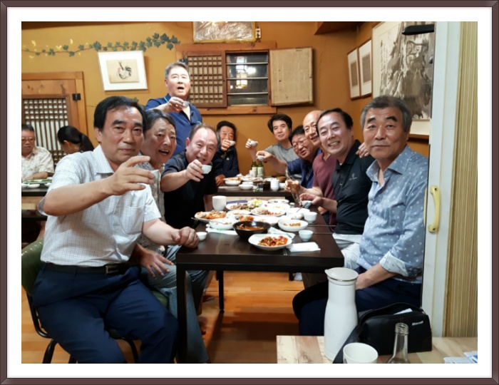 동북1618 동창회 2018년 9월 모임 작성자박상규|작성시간18.09.19|조회수167 목록 댓글 0 글자크기 작게가 글자크기 크게가 동북1618 동창회 2018년 9월 모임 모임 일자 : 2018년 9월18일(화) 오후 6시모임 장소 : 장자의나비 금년 9월 동창회 모임은 지난 3월에 이어 박정철 동문이 운영하는인사동 '장자의나비'에서 있었고 총 10명의 동문께서 참석해 주셨습니다! [특기사항] 평일 모임이라 참가인원은 적었지만 박정철 동문이 직접 담궈, 특별히 아끼던45도 및 75도 민속주로 즐거운 저녁시간을 가졌습니다~